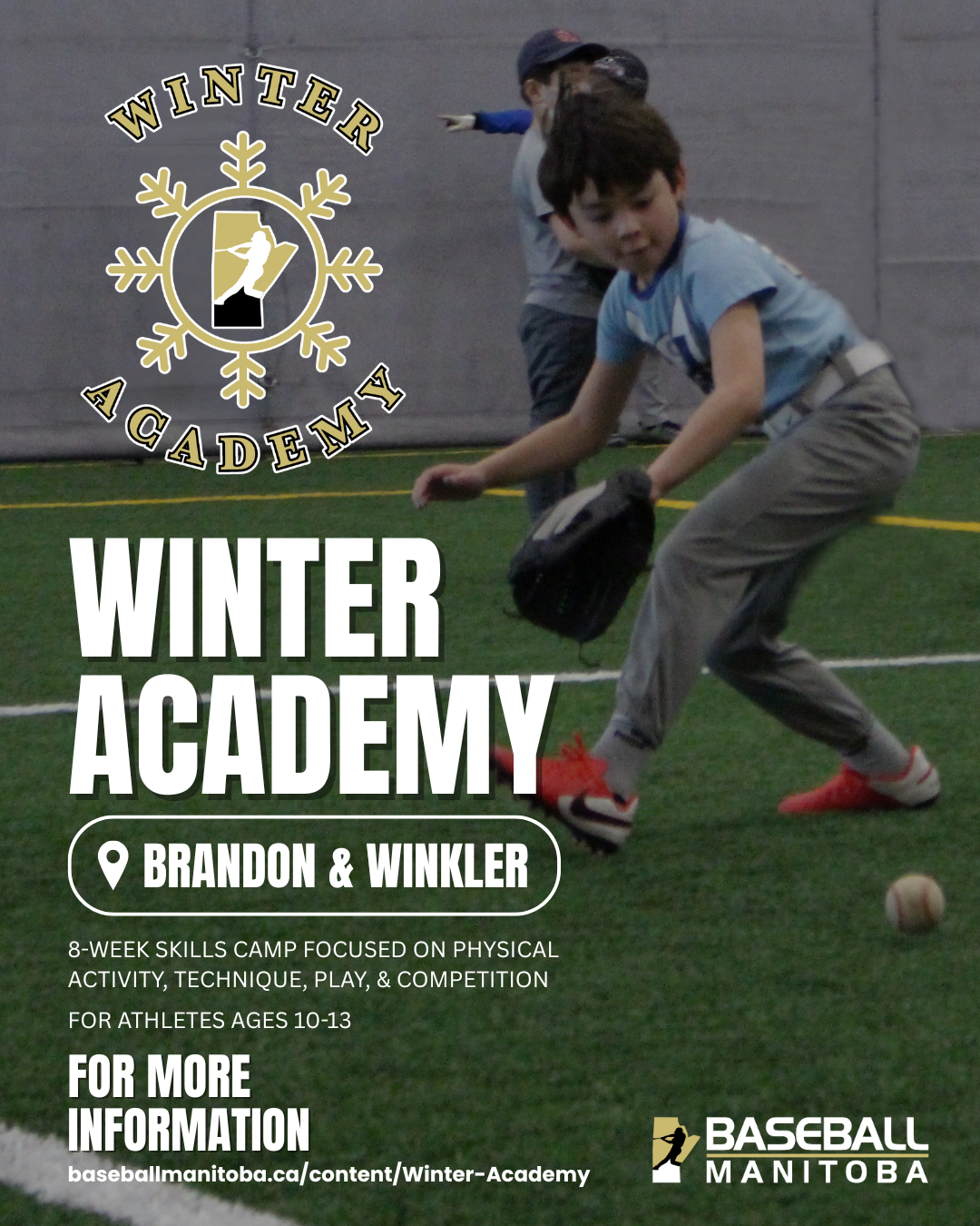 Baseball Manitoba is excited to present the 16th annual Winter Academy! Prepare for the 2026 season with this 8-week skills camp focused on physical activity, technique, play, and competition.