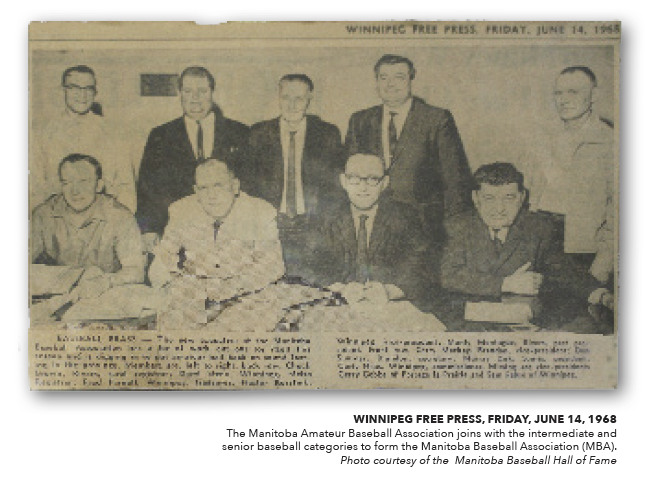 In 1952, under the leadership of Doug Cove of Winnipeg and Laurie Artis of Dauphin, the Manitoba Amateur Baseball Association was formed which has had as its primary purpose to organize and administrate provincial playoffs in various age categories. This organization stayed in place until 1966 when it became known as the Manitoba Baseball Association Incorporated. Following a successful tenure in minor age categories, this organization decided to join with the intermediate and senior baseball bodies to form the Manitoba Baseball Association (MBA) in 1968. At that re-organizational meeting, under President Murray Zuk, the MBA also affiliated with the Canadian Federation of Amateur Baseball. The aim of the association was to administer baseball throughout the province and provide a level of consistency in the process.